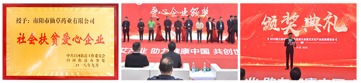 公司為白河街道貧困戶捐助30萬元,做為股金入股企業(yè),年分紅利3萬元,由街道辦事處為貧困戶購買公益性崗位和做為貧困戶收益,為貧困戶提供更加有效的就業(yè)保障。提高貧困戶收入。2018年10月16日舉行隆重的授牌儀式,會(huì)上市領(lǐng)導(dǎo)對(duì)南陽仙草藥業(yè)有限公司的扶貧工作給予高度贊場和肯定,并鼓勵(lì)其他企業(yè)向仙草藥業(yè)學(xué)習(xí)。